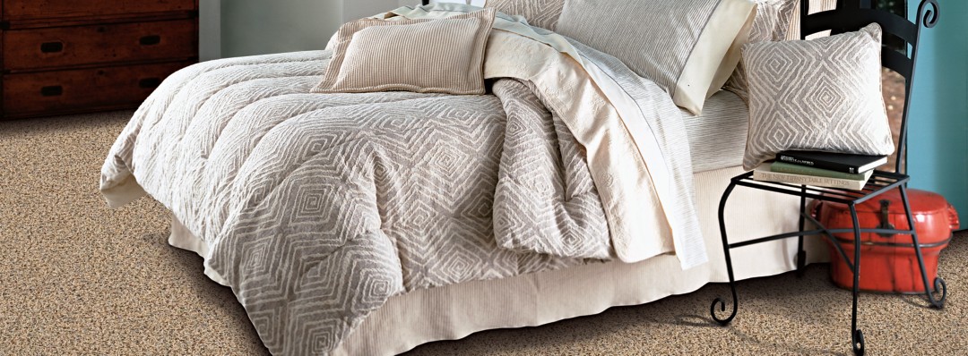 5) Frieze (pronounced like “frizz-AY”) is the sister to shag, but extra-twisted. Each piece of yarn is twisted so much that each twist falls back on itself, creating a highly durable surface that feels good on your feet like a plush but that hides dirt and traffic pattern better than plush carpet. This style can go pretty much anywhere in your home where you want a casual, durable surface, and it does a great job hiding dirt and footprints. It’s common to see it on stairs, but we prefer loop of cut loop carpet on stairs because even through the twisted yarns are more durable than the less-twisty yarns of plush or shag carpet, over time the leading edge of the step will still go bald as the yarns wear down.